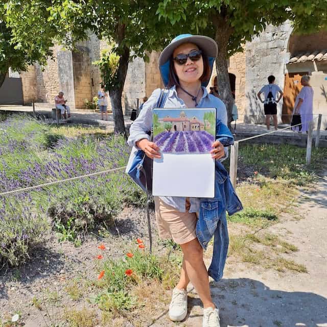 Picture yourself painting by the peaceful banks of the Sorgue river as the cheerful hum of cicadas fills the warm afternoon or strolling through the vibrant Provencal markets where the scent of lavender and freshly baked bread mingles with the colorful bustle of vendors.
